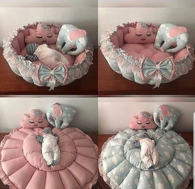 КОЛЫБЕЛЬКА-ТРАНСФОРМЕР Выкройка совсем простенькая - 2 круга диаметром ( примерно )- 130-140 см. Простегать, набить синтепухом, по краю украсить кружевом, пришить кулису в которую продеть шнур или ре