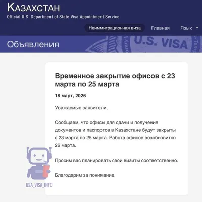 🇰🇿🇺🇸 О ситуации с местами в Астану 4 февраля посольство США в Астане открыло места на лето и сентябрь 2026 года. Места закончились очень быстро. С 4 февраля дополнительных мест на лето - осень