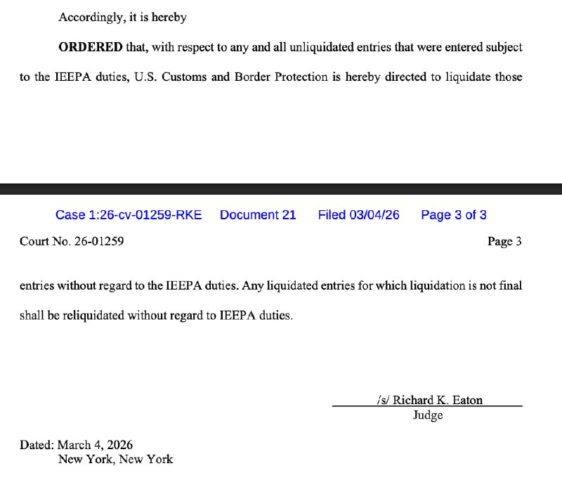 Вчера достаточно быстро была поставлена если не точка, то точка с запятой в вопросе того как правительство будет возвращать собранные с американских компаний тарифы/пошлины. Истцы просили в качестве