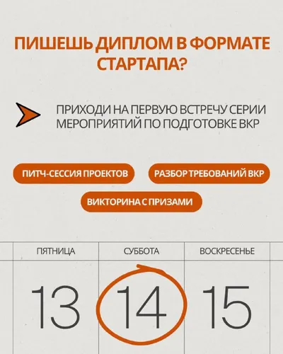 🚀 Диплом в формате стартапа: с чего начать и как не потеряться в процессе? Если вы планируете писать ВКР в формате стартапа — приглашаем на первое мероприятие из серии встреч, посвящённых подготовке