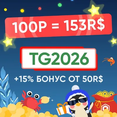 🚀 ЭТОТ КУРС ПРОСТО ИМБА!: 100₽ = 153R$! Мы обновили цены, теперь покупать стало еще выгоднее! 🎁 Специально для Вас мы подготовили сочный промокод: 🔸 TG2026 даёт +15% бонуса (при покупке от 50 R$)