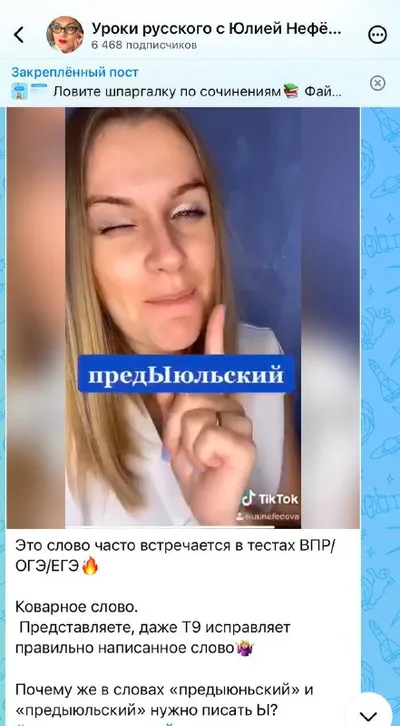 ОбразованиеНефёдова Юлия Николаевна—репетитор по русскому языку,эксперт ЕГЭ,руководитель онлайн-школы. Записаться на занятия: ymklass.ru 📚Связаться со мной: @uunefedova РR и сотрудничество: @ManuilenkoNatalia Уведомление № 001830 #WUFUV