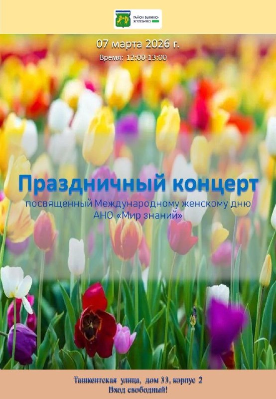 🌸 Встречаем весну концертом в «Мире Знаний» 7 марта жителей приглашают на праздничную программу к Международному женскому дню. Гостей ждут творческие номера, тёплые поздравления и уютная атмосфера.
