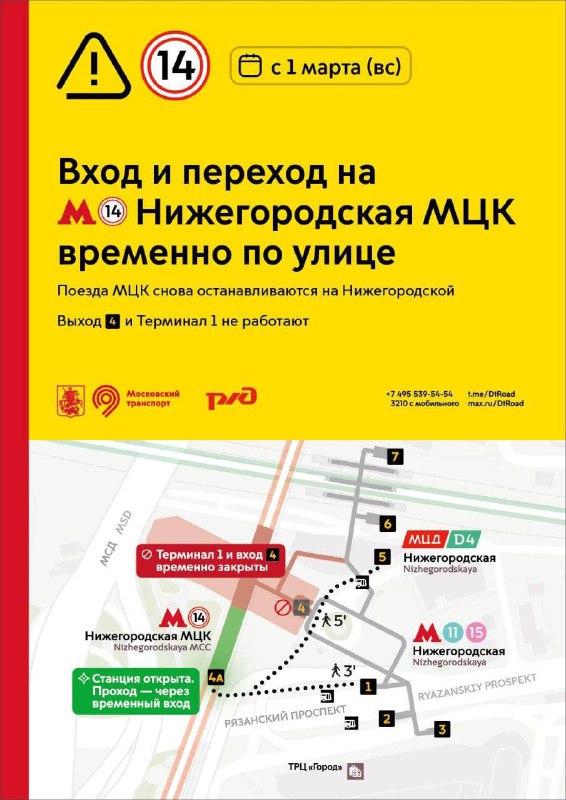 🚉 С 1 марта поезда МЦК снова начнут останавливаться на станции «Нижегородская» Вход на платформу будет организован через временный турникетный павильон — схема прохода в карточке. Максим Ликсутов со