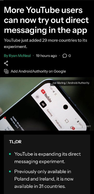 А вот и новый мессенджер подъехал - ютуб начал абтестить возможность переписываться в лс. Выглядит перспективно (не для нас конечно).