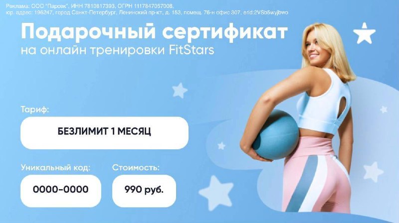 Подарок с заботой о здоровье 💖 К 8 марта FitStars выпустили подарочные сертификаты в двух форматах 🔵 безлимит на 1 месяц — идеально, чтобы ознакомиться с платформой и попробовать новые виды активн
