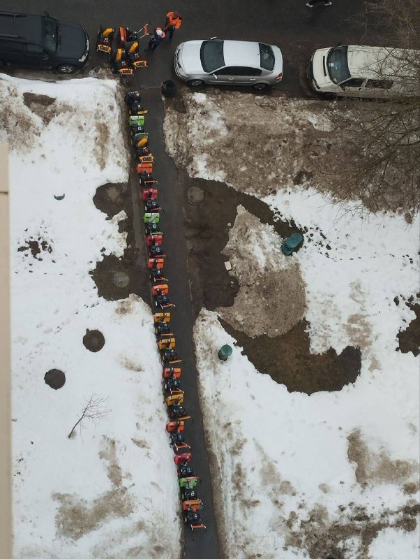 😟 Показательное выступление вместо работы На Севастопольском проспекте, 71, корпус 1, устроили настоящее шоу — колонна снегоуборочной техники стоит, но снег как лежал, так и лежит… Плохо грузит Tel