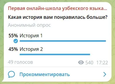 ОбразованиеУзбекский язык за 3 месяца с нуля до результата! Уникальная методика, разработанная нашей командой, позволит вам выучить узбекский язык с комфортом и в короткие сроки. Записаться на курс: @uzbek_start_bot