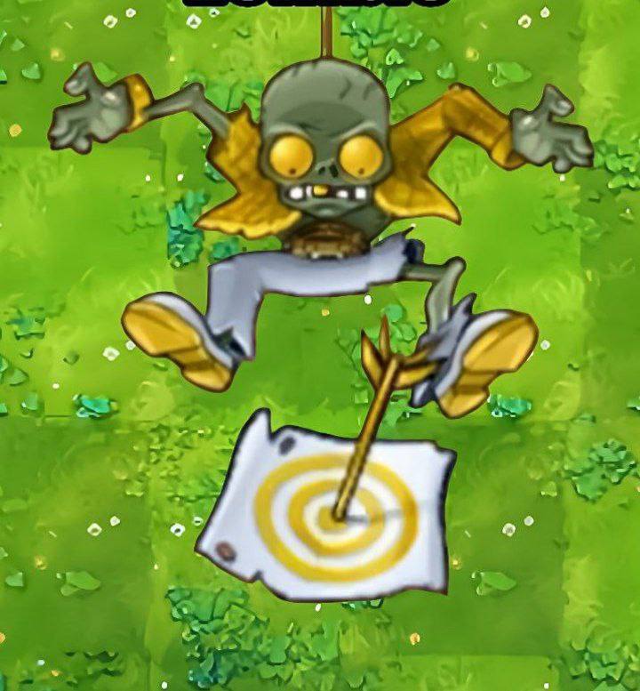 Золотой зомби на тарзанке Описание персонажа - Здоровье: 1350 единиц - Особенности: все свойства Зомби на тарзанке - Способность при взаимодействии с Зонтолистом или его гибридами: при отбросе при