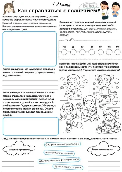 😓 Рабочие листы по теме «Как справляться с волнением?» Сегодня вы можете скачать: 🔅 Рабочий лист для 1-2 классов 🔅 Рабочий лист для 3-4 классов 🔅 Рабочий лист для 5-7 классов 🔅 Рабочий лист дл