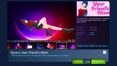 В Steam вышло приложение... Мама твоего друга Её можно поставить себе на рабочий стол в откровенных нарядах, а также есть физика сисек Ты знаешь кому отправить