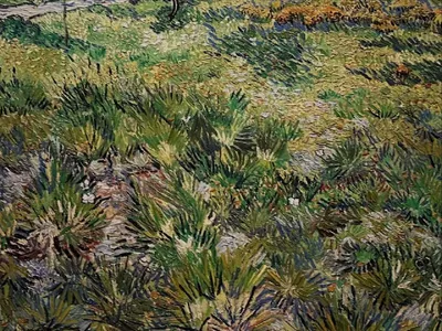 Скрытая красота 🦋 Знаете ли вы, что Ван Гог нарисовал этот участок луга, будучи пациентом в Сен-Поль-де-Мозоль, психиатрической больнице на юге Франции? 🏥 Этот шедевр, «Высокая трава с бабочками»,