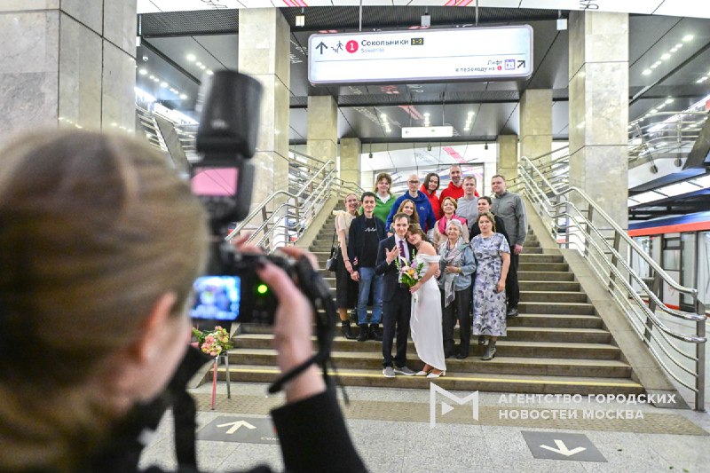 💍 Сегодня ночью на станции БКЛ «Сокольники» впервые прошли регистрации брака: образовались 4 новые ячейки общества Церемонии проводятся с 02:00 до 04:00, чтобы не мешать пассажирам. Участников соп