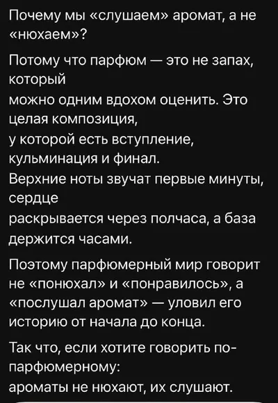 Тем временем в тредс высадился наш парфюмерный десант и пояснил за слушание ароматов. И так будет с каждым!