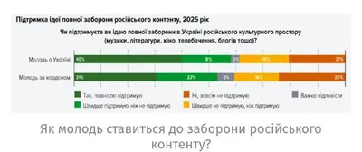 Доля украинской молодежи, выступающей против запрета русского языка и контента, выросла вдвое за год — опрос группы «Рейтинг». 21% молодых украинцев 14–35 лет теперь против запрета российского культу