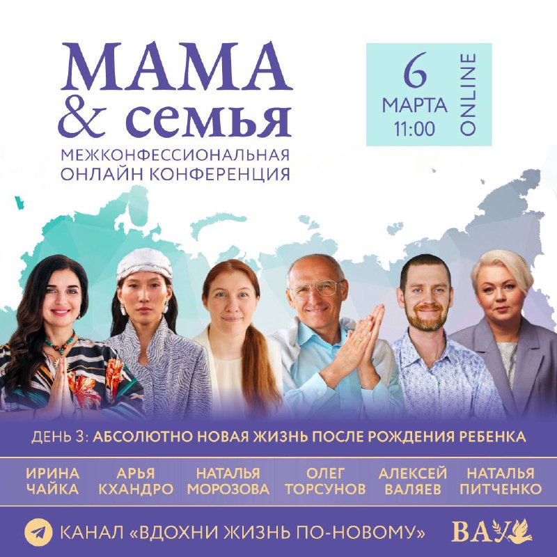 Объявляем спикеров 3-го дня межконфессиональной онлайн конференции «Мама и Семья» на канале «Вдохни жизнь по-новому» @vdohniponovomu 🪷 Тема: Абсолютно новая жизнь, или как сохранить семью после рожд