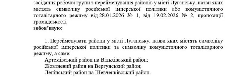 🤦♂️ В Луганске переименовали три района. На Украине. Помните, там целый конкурс на новые названия устроили? Вот результаты: ▪️Артёмовский район — в Ольховский; ▪️Жовтневый район — в Вергунский; ▪️