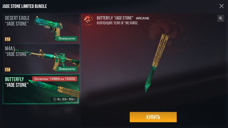 Нож Butterfly Jade Stone вышел в продажу! Цена: 2999 рублей Количество: 15000 штук Перед покупкой используйте мой код автора: VELYA 🚀Веля - новости, голда, промокоды