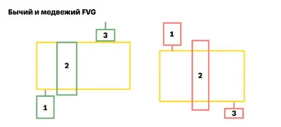 FVG (Fair Value Gap) — это участок на графике, где цена прошла слишком быстро и не было нормальной торговли. Из-за этого остаётся “пустота” между свечами. Проще говоря: цена не двигалась плавно, а пр