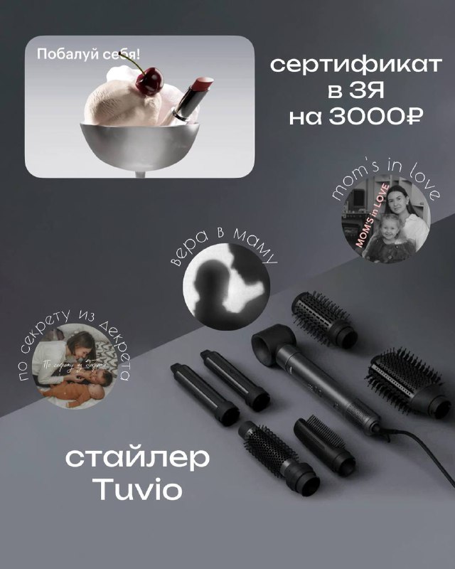 Каждая девушка прекрасна! 🌸 В честь праздника хотим порадовать вас и подарить два подарка: 🔴Стайлер Tuvio 🔴Сертификат в ЗЯ на 3.000₽ Чтобы принять участие, надо: 🔴Подписаться на: По секрету