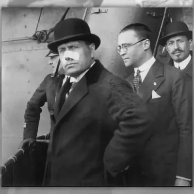 1926 год, Бенито Муссолини с перевязанным носом после выстрела Вайолет Гибсон. Муссолини в последнюю секунду повернул голову - и пуля задела его нос вместо того, чтобы убить. @VeritasHistory
