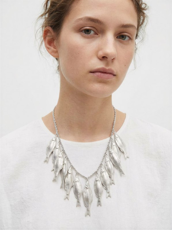 ⚡Блестящий улов Это ожерелье из посеребрённой воблы вполне мог бы принести отец с рыбалки. Главное - случайно не оставить его на форточке 💜💜💜