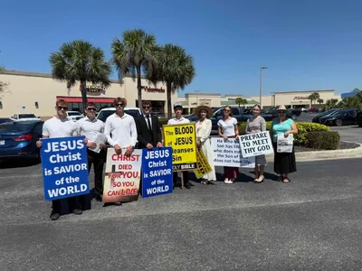 Сегодня, в воскресный день, наши друзья из молодёжи церкви города Норт-Порт, штата Флорида, вышли с христианскими евангелизационными плакатами, чтобы напомнить и рассказать людям о нашем Господе! Амер