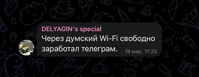 В здании Госдумы заработал Telegram «Через думский Wi-Fi свободно заработал Telegram, — сообщил депутат Делягин» Ой, чудо чудное! Побаловались и хватит 🤪