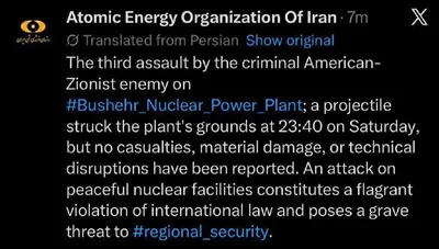 Несколько минут назад израильские и американские истребили нанесли удар по АЭС «Бушер» в Иране. Ребятки, кажется начинается ядерная война. 😧 Хотелось бы, чтобы Вольфович ошибся.