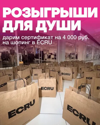 Дарим сертификат на 4 000 рублей в ECRU📍 Выбирайте сами, как будете его тратить – загляните на скидки до 80%, примерите новую весеннюю коллекцию или посмотрите подарок для неё. Правила простые: • п