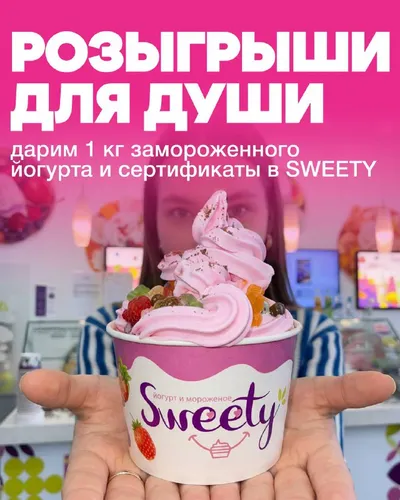 💕Дарим 1 кг замороженного йогурта и сертификаты на сумму 3 500 рублей на замороженные десерты в Sweety Пробуем новый вкус замороженного йогурта Чёрная смородина и другие вкусы в Sweety! И самостояте
