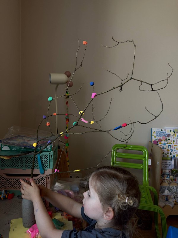 Если вдруг вам дома скучно, идея чем заняться 🧡 Вету примерно час не было слышно, человек лепил. Что понадобится ветки с улицы и воздушный пластилин 💙
