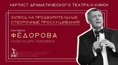 ⭐️ Открыта запись на предварительные отборочные прослушивания (АПРЕЛЬ) в мастерскую Фёдорова Александра Львовича: 📌 8 апреля 2026 года (1 тур) 📌 9 апреля 2026 года (1 тур) 📌 14 апреля 2026 года