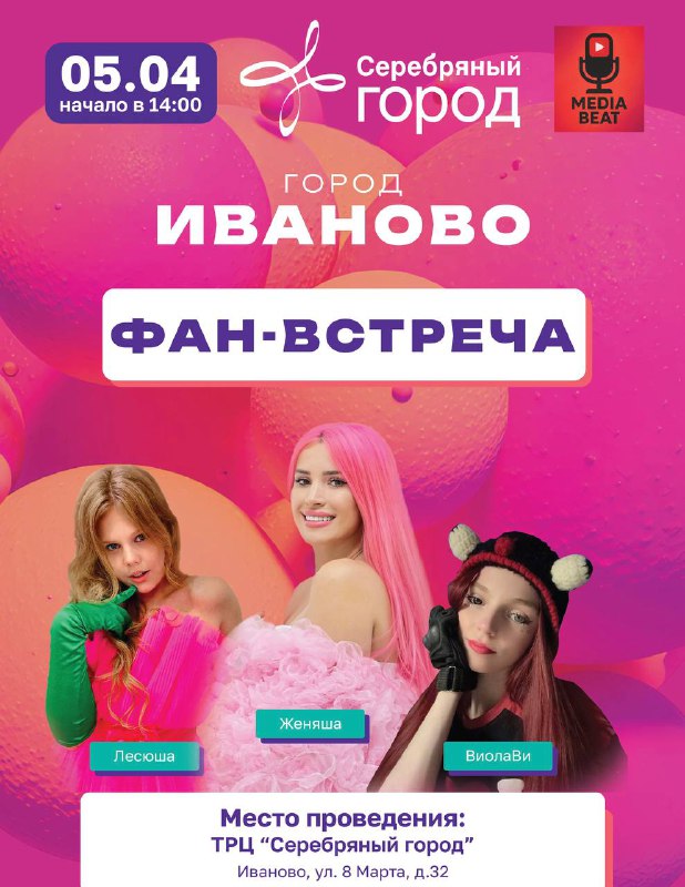 Иваново 5 апреля / 14:00 🕑 ФАН-ВСТРЕЧА Вход - бесплатный❗️ В программе : Концерт 🎶 Автограф ✍🏻 сессия Фотосессия 📱 Призы 🎁 Всех жду!!! Кто подарит плакат/подарок, то будет распаковка на
