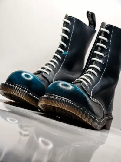 DR. MARTENS MADE IN ENGLAND 🇬🇧 MODEL: CRAZY BOMB VINTAGE Производство 90-х STEEL TOE Стальные стаканы Пара выполнена из жирной кожи Black Greasy РАЗМЕР: UK 8, EU 42, 27 СМ 20000 RUB ПРО