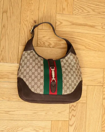 Сумка Gucci Jackie в монограмму бренда. Оригинал. Производство Италия. Отличное состояние. Комплект: плечевой ремень, пыльник. Выполнена из канвы и замши. Культовая модель, которая не теряет актуально
