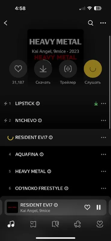 ⚡️HEAVY METAL ВЕРНУЛИ НА СТРИМИНГИ! Однако во всех ранее удалённых треках были заблюрены все противоречивые строчки 😔 Также по ошибке, вместо трека N1CHEVO играет LIPSTICK. 🖤– #свободатворчеству