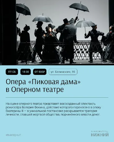 Антон Беляев во Дворце спорта, новая выставка в НГХМ и «Сороки» на Щелоковском хуторе — рассказываем, чем заняться в Нижнем с 20 по 22 марта 🔸 Опера «Пиковая дама» в Оперном театре 🔸 Лекция про ед