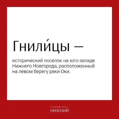 Что все это значит: Гнили́цы Гнили́цы — исторический поселок на юго-западе Нижнего Новгорода, расположенный на левом берегу реки Оки. ✍️ О происхождении названия существует несколько легенд: по одно