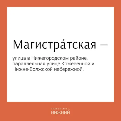 Что всё это значит: улица Магистратская Магистратская — улица в Нижегородском районе, параллельная улице Кожевенной и Нижне-Волжской набережной. ✍️ Название улицы произошло от магистратов — это горо