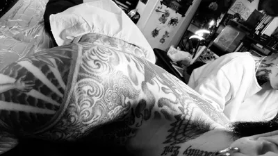 Твит Йошиацу: Сегодня бью тату Завтра концерт #Fukuro #DRUGS