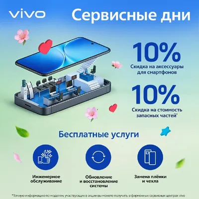 3 дня, 4 города — весенние сервисные дни vivo уже близко! С 1 по 3 апреля включительно приглашаем вас в фирменные сервисные центры в Москве, Санкт‑Петербурге и Екатеринбурге. А для Казани сервисные д