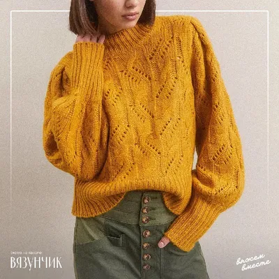 Джемпер с оригинальным вязанием рукава.