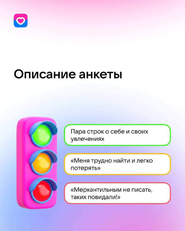 Сделайте вклад в знакомства под высокий процент взаимности! Напоминаем, что в нашем сервисе доступны специальные отметки от Т-Банка. Они помогают сразу обозначить ваш подход к свиданиям, а анкеты с н