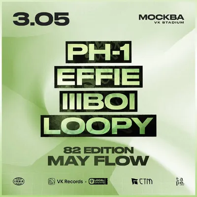 82 Edition: May Flow: Ph-1, Effie, Lilboi, Loopy 3 мая - VK STADIUM Ожидается аномальная жара! 82 EDITION: MAY FLOW снова накрывает столицу волной энергии и незабываемых впечатлений! Эта весна буд