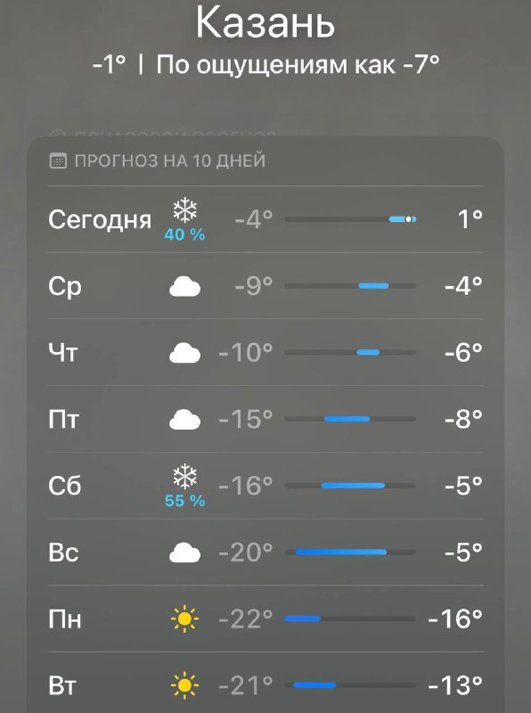 😱Морозы возвращаются в Казань. Уже завтра на улицах будет каток. А в начале следующей недели в столице похолодает до -22 градусов. Присылайте нам новости через @VTPnewsbot — и вас услышат! Подпи