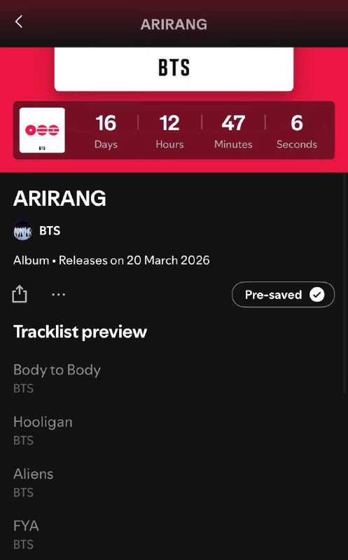 Spotify начал отображать название и список треков альбома Arirang… ПРИВЕТ?!??! 💌@vkook_gallery