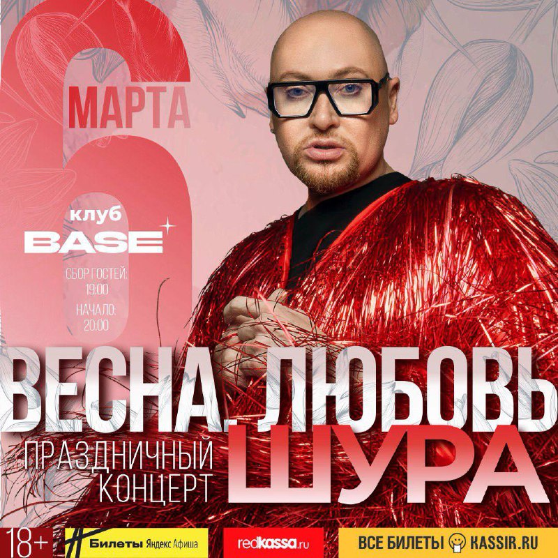 Весна. Любовь. Шура. ❤️ Артист готовит самое душевное выступление перед праздником для милых дам! Увидимся в клубе BASE! 💙