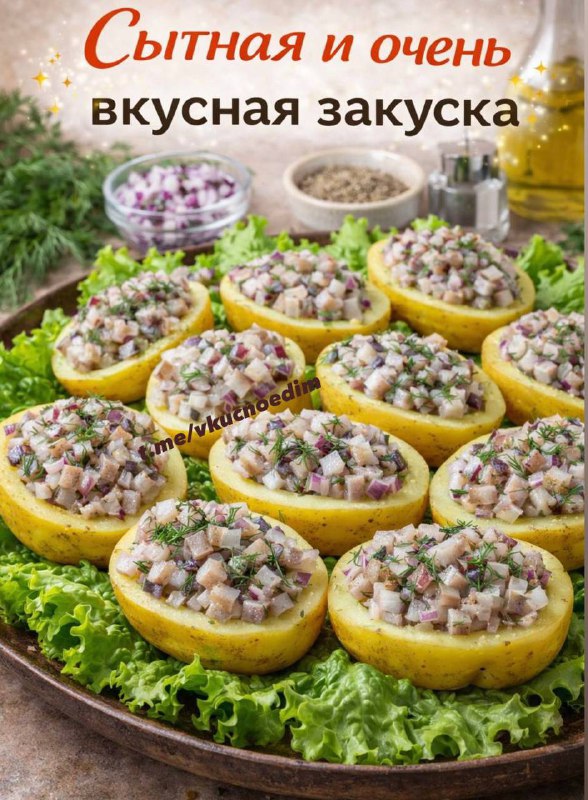 Отварной картофель, фаршированный селёдкой и луком. Простая, сытная и очень вкусная закуска в стиле 📝 Ингредиенты 6–8 средних картофелин 1 филе слабосолёной селёдки 1 небольшая луковица (красная или