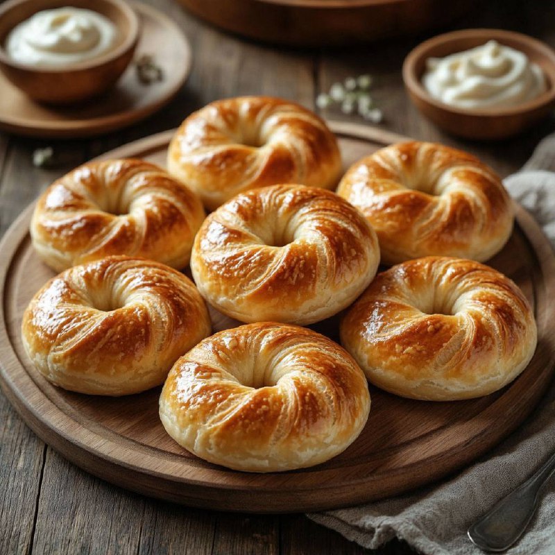 Слоёные бублики (ачма) 🛒 Ингредиенты: Тесто: Мука — 500 г Тёплое молоко — 200 мл Тёплая вода — 100 мл Сухие дрожжи — 7 г Сахар — 1 ст. л. Соль — 1 ч. л. Яйцо — 1 шт. Растительное масло — 3 ст. л. Дл